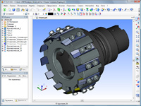 The model of a real product was created. Parametric modeling of all elements of the design was executed in the T-FLEX CAD. When designing the mill, the real process of developing tools of such class "from removable many-sided plates" was modeled.