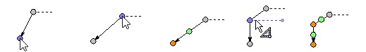 To create a bend, it is required to move the cursor closer to the green marker (it will also be highlighted with orange color) and select it with the help of