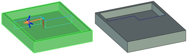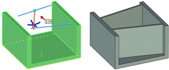 After the operation creation, all space between the walls of the source body and the contour in determined direction is converted into the solid rib of specified thickness.