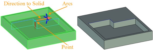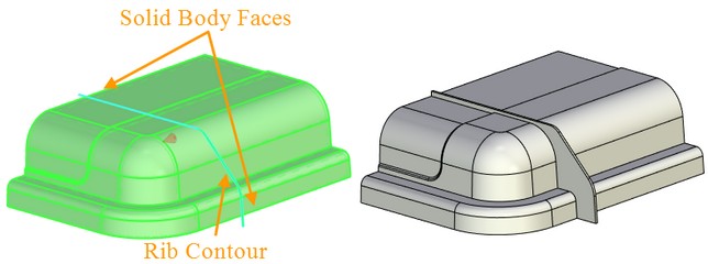 A rib is an element that is obtained by extension of a contour in the given direction until intersection occurs with the faces of the initial body.