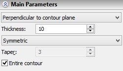 The value of thickness can be specified in appropriate field of the «Main Parameters» tab of the command’s properties window or by means of manipulator.