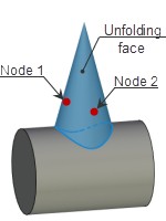 Each selected edge has a direction indicated by an arrow. Other blend-defining conditions depend on this direction. The arrow tail defines the edge start. According to an agreement, the surface on the right-hand side of the edge, as looked in the arrow direction, is conventionally called the first blend surface, and the one on the left-hand side – the second. |