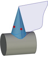When blending a pair of edges of the same convexity, two blend surfaces are constructed – one per edge. The vertex is not blended in this case; rather, new edges are created at intersections of blend surfaces.
