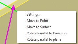 Rotate Parallel to Plane. The direction of the dragger will be parallel to the selected plane. After selecting the considered option in the context menu, it is necessary to indicate a face, surface or workplane in the 3D scene.