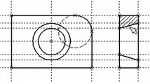 . Next, connect the left ends on the plan view with another segment. Create the centerline and the lines of the conical hole projection in the same way as on the side view. Doing so, maintain the appropriate line types.