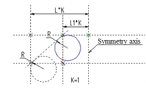 The second figure shows how the drawing will be changed when the variable’s value is К=-1. The circle that was snapped to the node was reconstructed correctly. The second circle that is constructed without spanning to a node changed its location with respect to the symmetry axis.