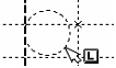 The dynamically changing circle radius will be displayed in the coordinate field of the status bar. Note that you can move the cursor to any of the four quadrants defined by the lines, and the rubberbanded circle will correctly follow the cursor.