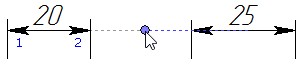 Once the second dimension reference element was selected, regardless of the selection technique, a dimension will start rubberbanding on the screen following the pointer movement. The start point and the end point of the dimension line will be marked by numbers: “1” – the start point of the dimension line, “2” – the end point of the dimension line.