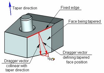 Instead of an edge, it is possible to indicate a fixed face. Intersection of the selected face with the tapered face defines a fixed taper line.