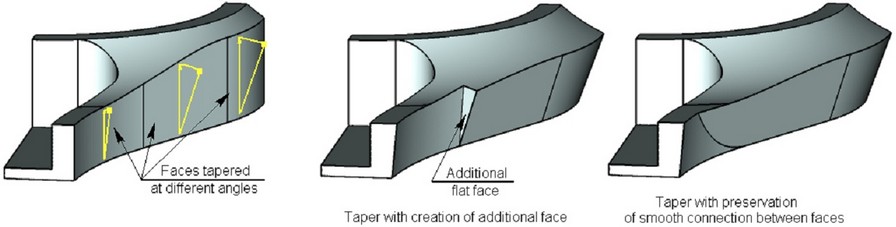 When creating a taper, there is a possibility of creating a gap between the tapered and adjacent to them non-tapered faces. To process these gaps, it is possible to use two methods: