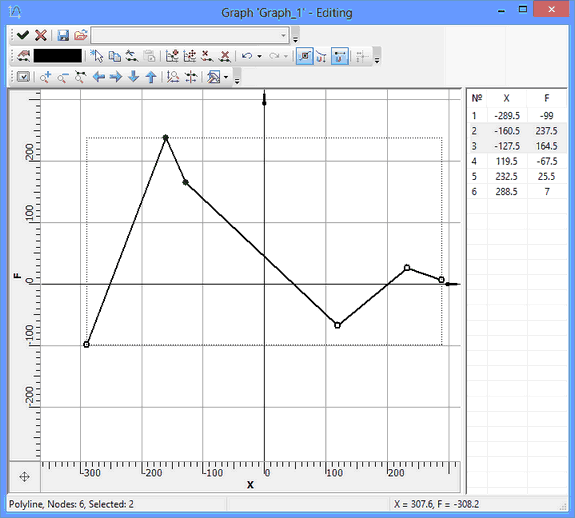 At the right of the workspace there is the table of graph point coordinates. Point coordinates can be edited directly in this table. You can start editing coordinates after double-clicking ![]()