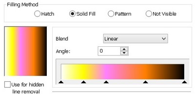 anywhere on the scale. A standard Windows dialog for defining color will appear. After selecting a color and closing this window, the specified color will appear on the scale. A color position on the hatch transition scale is indicated with a triangular marker below the scale. Using the marker, you can set the new position of the color on the scale. To do this, point to the desired marker, depress