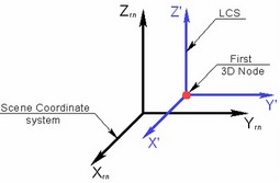 An LCS is displayed in the 3D scene as three named arrows, indicating the directions of the axes of the given coordinate system. The point where the arrows drawing is the LCS's origin. The size of an LCS's image is controlled in the command "ST: Set Document Parameters", on the tab "3D-View", by the parameter "Size-LCS".