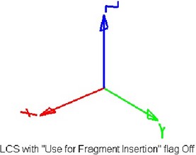 Location of the 3D fragment in the assembly gets fixed by combining two coordinate systems: source one – belonging to the fragment, and target one – located in the assembly model. The LCS created in the fragment document and assembly document are usually used as the source and target coordinate systems.