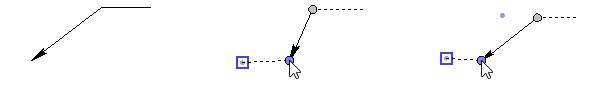 After preliminary snapping of a leader note, location of its snapping points can be modified. It is also possible to change the shape of an arrow by creating on it any number of bends. To control snapping of leader note’s points, and also for specifying bends on its arrow, special markers are used.