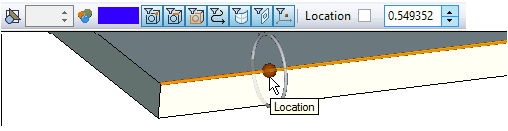The start point of the segment is created on the surface at the place of the mouse click. By adding the next point, its location can be changed with the help of manipulator. The red arrow (U axis) allows us to translate the point across the selected surface. The value of the translation is specified on the system toolbar.