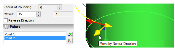 For the manipulator of rounding there is a limitation – minimum radius, i.e., the manipulator with the radius as small as desired cannot be specified. For input of small values of rounding, the field in the properties window must be used.