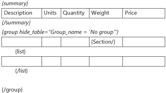 10.If a group header has no text (for example, if it is a group of records without section), the table will be empty and should not be displayed in the report. You need to add a condition. First, you need to find name of the corresponding group in the product structure. Its name is “No group”.