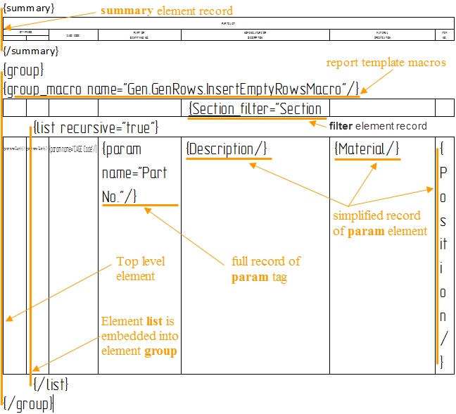 4.param – The parameter is used only in the table. Content is ignored. An element is replaced by the value from the product structure column. Should not be embedded into each other.