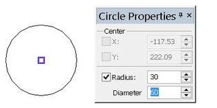 on the selected entity launches the mode of editing the radius of the circle, ellipse or arc. A new value of the radius (diameter) can also be assigned via the property window or by rubberbanding the entity image to the desired position and clicking
