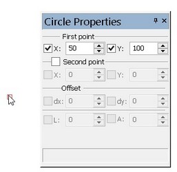 When the pointer is in the drawing area, the property window tracks the current coordinates of the pointer. If necessary, those can be changed in transparent mode by typing the desired value directly from the keyboard. The active input box can be set by pointing and clicking
