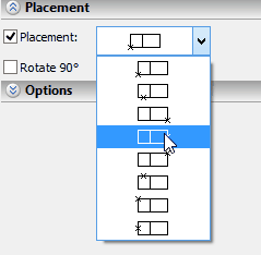 Placement. Defines the box positioning with respect to the attachment node. Eight different positioning options are provided in the pulldown menu.