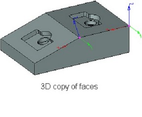 Copy of faces allows a user to add to the bodies present in the 3D model the holes and raised portions which duplicate already exiting structural elements.