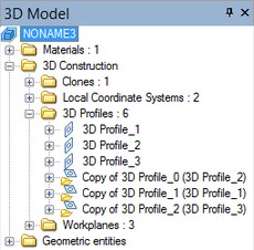 The copy operation allows a user to create copies of any 3D construction elements. In the tree of the 3D model, the created operation is put into the special folder “3D Construction|Copies”. The elements-copies, obtained as a result of using this operation, are also put into the corresponding folders of the tree. For example, when creating the copy of a 3D profile, the resulting profile-copy will be put into the folder “3D Construction|3D Profiles”. When copying workplanes and LCS, the additional transformation of symmetry can not be applied to the created copies. |