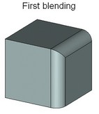 To avoid the vertex blending, do the edge blending by two blending operations, first blending any two edges meeting at a vertex, and then the third edge. The result in this case will look as shown here: