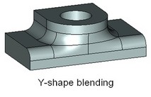Suppose, two edges of opposite convexity are tangent at a vertex with three or more faces meeting there. In such a case, a special procedure is available for blending the vertex - the so-called Y-shape blending. In this way, surfaces come out lesser curved in the transitional zone around the vertex, then in the conventional way of blending.