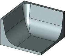 When blending a pair of edges of the same convexity, two blend surfaces are constructed – one per edge. The vertex is not blended in this case; rather, new edges are created at intersections of blend surfaces.