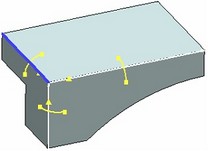 It is very important to understand how the information is maintained about the original elements subjected to blending. These original elements selected for blending are remembered in the model history. Thus, in case a face was selected, a reference to this face is recorded in the model tree. In this case, the set of edges to blend is built anew at each regeneration. This way of selecting brings the advantage of having a quite robust operation. If topology of the selected object changes (for example, the number of edges changes), the operation will be correctly regenerated with the new set of edges of the involved object. Otherwise, if a specific edge were selected that would later disappear, then the system would output an error. |