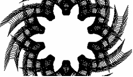 An animation of the drawing of a cutting tool appears as if "machining" of a cog wheel: