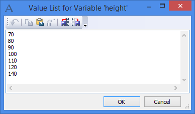 A "Combo Box" control allows an additional manipulation. If it is bound to a variable whose predefined list is based on a file, then you can modify this list directly in the dialog page by turning on the "Editable" parameter. To do this, point the mouse to the input box of this control and access the context menu. Commands will be provided in the context menu for modifying the list of predefined values of the variable. Upon selecting the command "Add to list", the value entered in the input box is added to the list of values for this variable. Selecting the command "Edit list" brings up the "Value list of variable" dialog box, that allows editing the existing list.