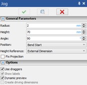 Graphic draggers were added to all command of the sheet metal group to specify operation parameters (draggers for length, angle, intends, direction of bends).