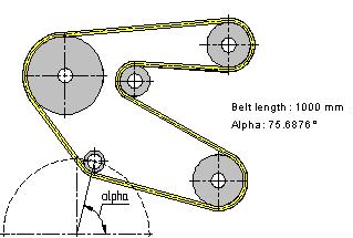 Upon defining all optimization parameters, any change in the drawing will trigger the optimization. For example, moving any of the rollers or changing any radius requires running the optimization to define the position of the idler. Meanwhile, the belt length is maintained equal or nearly equal to 1000 mm.