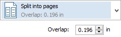 Overlap. This option sets the amount of overlapping between the neighboring sheets when using the Split into pages option. The overlap can be used for gluing separate printed sheets together.