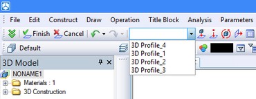 In the “Workplane” and “Workplane (draft)” sets of the main toolbar of T-FLEX CAD, the element of control with the list of 3D profiles constructed by graphic lines of the given plane is available. If one of the profiles is selected from this list, the graphic lines that form this profile are automatically displayed on the screen in large size and newly created graphic lines are assigned the color of the selected profile.