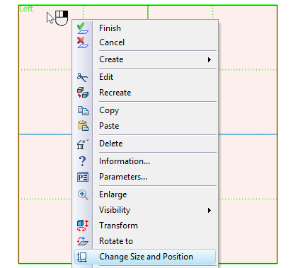 To modify the size of the workplane, move the pointer to one of the square handles on the workplane border. The pointer will change the appearance, reflecting the current resizing action. Depress |