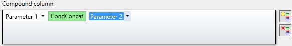 Data of the product composition column can be filled by taking data from other columns and applying to it various mathematical and logical operators. To do so, you have to select the Compound column data assignment method in the Data Assignment drop-down list of the column properties dialog. Upon selecting this method, the column expression box appears below the drop-down list. The expression may consist of various records: names of other columns, arbitrary text strings, operators, parentheses. In the expression box records are shown as rectangles of different colors. Results of the expression will be used as column data in the