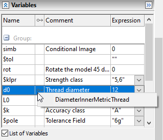 Upon attaching the fragment (for example, a nut) to the connector of another fragment (for example, a bolt) the values of the variables can be obtained automatically. For successful automatic connection of the variables with the connector, the following conditions must be met: