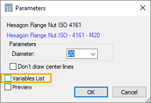 1.The 3D connector should be assigned named values (see Specifying named values for 3D Connector below). The names of these values will later be the link between the variables of the 3D fragment having a 3D connector (bolt) and the variables of the connected 3D fragment (washer).