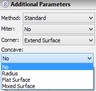 •Radius – a concave angle is covered with a surface of cylindrical type. In addition, the radius of the surface must be specified in the parameter Radius;