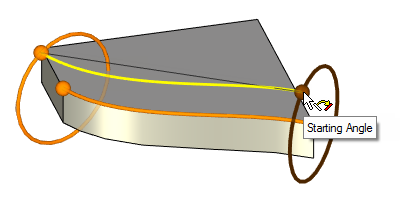 •Starting angle. Specifies the angle of rotation around the selected edge/path. Located at the start point of the path segment.