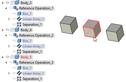 The result of division is creating a separate body for each physical part of an original body. Operation created by the Divide command is called Separation in the 3D model tree: