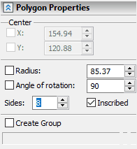 , or by specifying the exact coordinates in the parameters window. In the same window, you can set the number of sides and the type of the circle defining the polygon (inscribed or circumscribed).