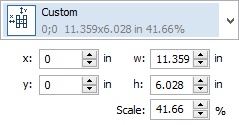 allows to select position and scale of the printed area manually. You can move printed area with pressed left mouse button. Mouse wheel rotation allows to change scale of the printed area when the option is active. The drop-down list switches to the corresponding location parameter according to the changes.