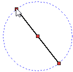 , you can set both the angle and the width value at the same time, or use the parameters window to set the exact values of these parameters. If you set the width value, then an image of a circle will appear, whose diameter is equal to the specified width of the rectangle. Diametrically located points defining the position of the side of the rectangle will move along the circle. Angle can be specified using