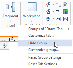 It is possible to add fragments from libraries to the ribbon. To do this, in the Customize command on the Ribbon tab, select the Insert Fragments from Library category and drag the required files onto the Ribbon tab. This allows you to create your own ribbon tabs with library items or add them to existing tabs.